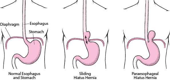 If the stomach expands and contracts, acid may begin to return to the alimentary tract. A lot of patients who seek laparoscopic surgery for hiatus hernia suffer from chronic acid reflux and chest pain.
